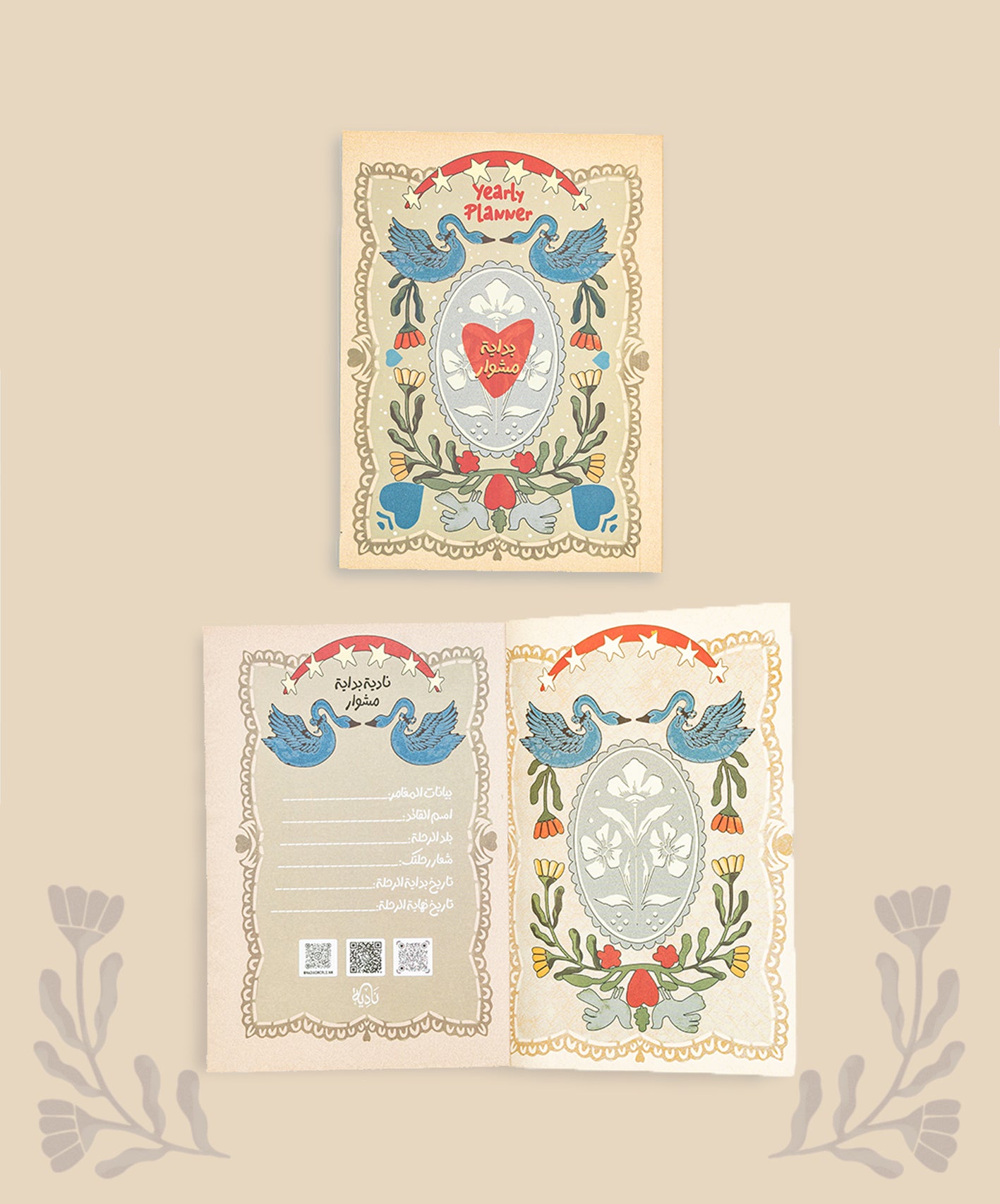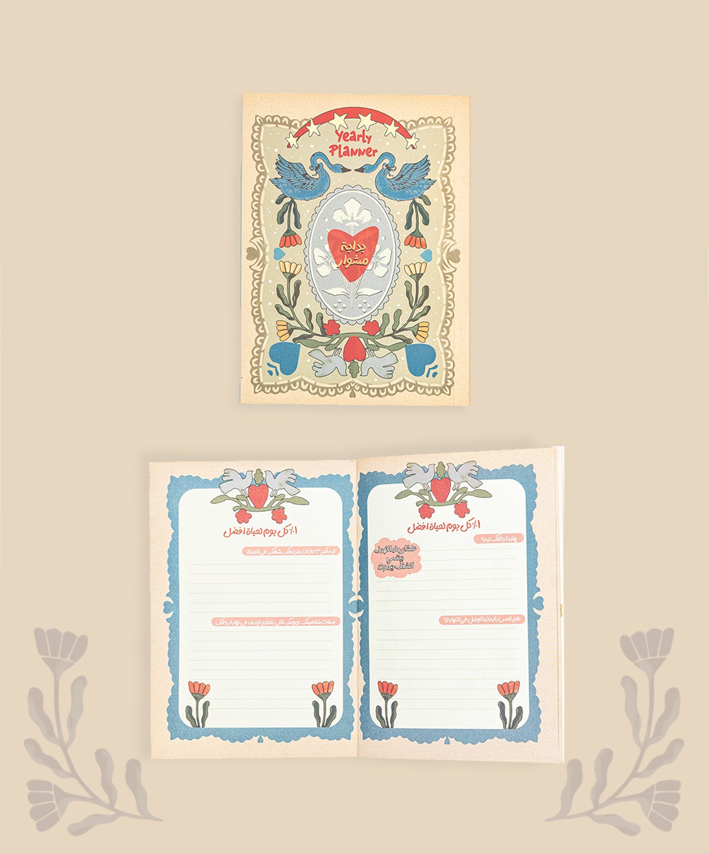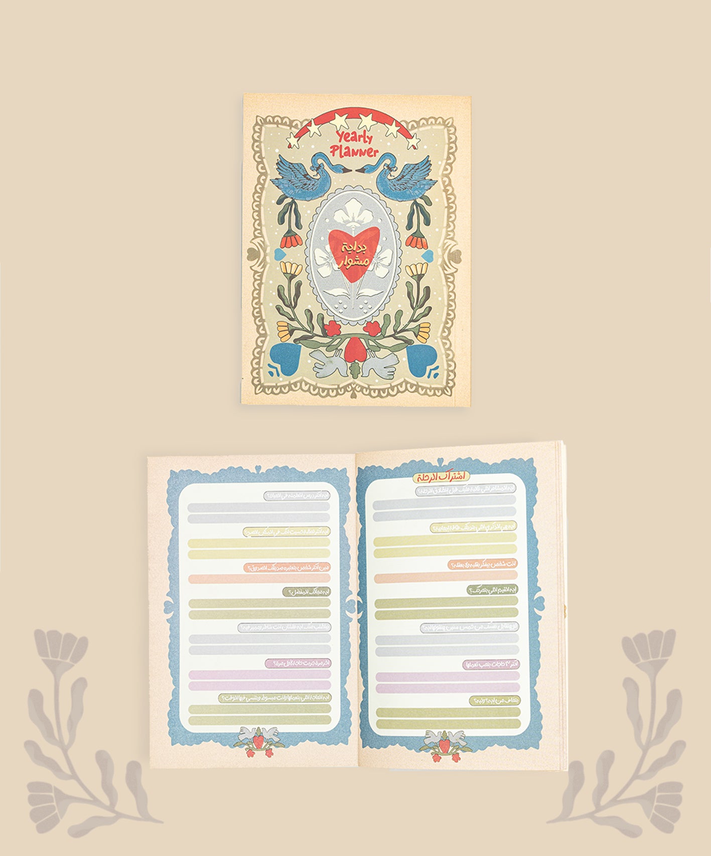 عبارة عن بلانر خاص موجود فيه أسئلة تساعدك تعرف نفسك ومخاوفك وايه اللي بيحمسك دايما . 📃